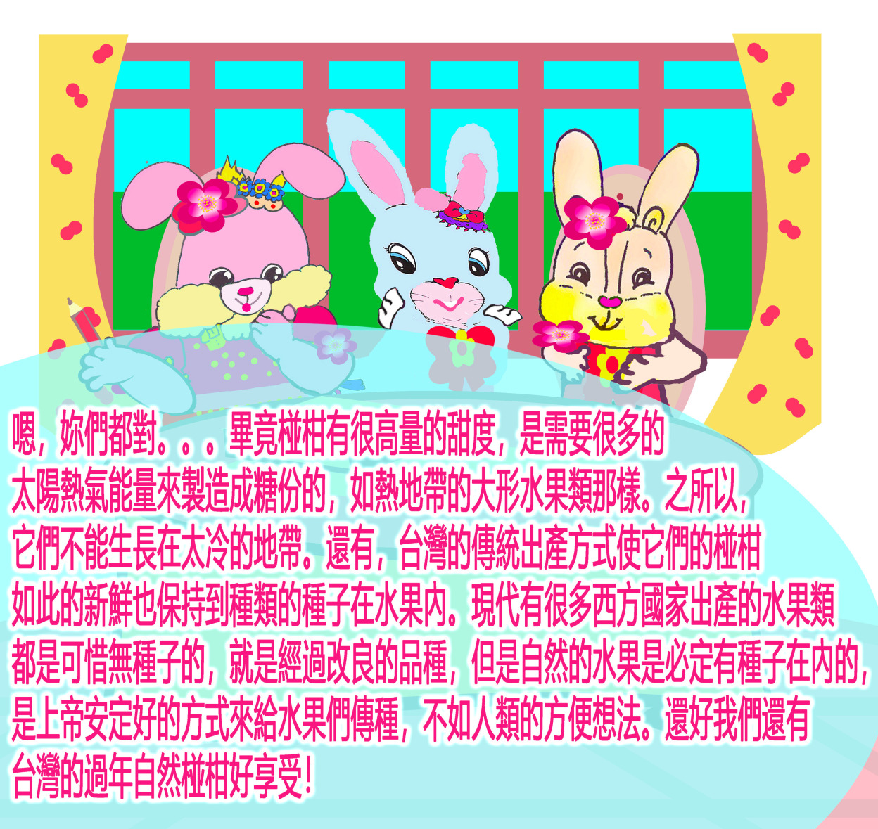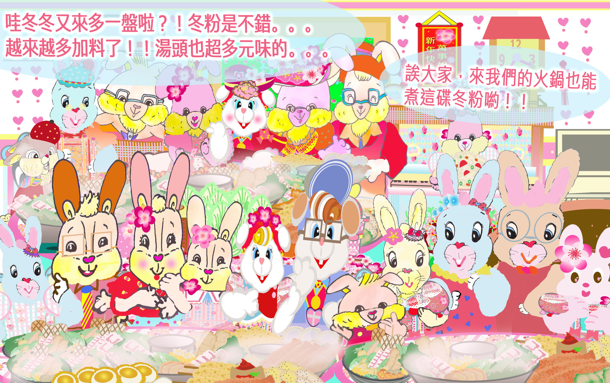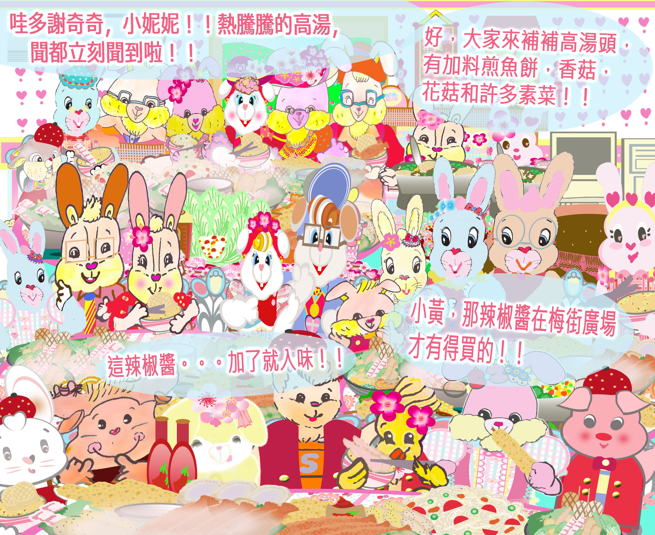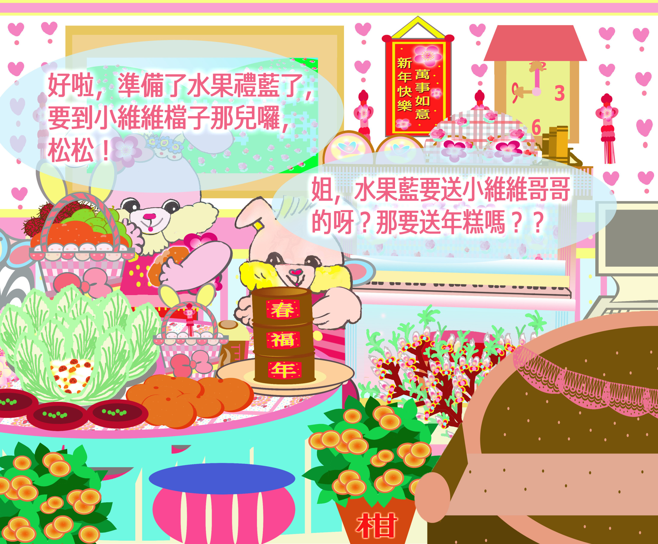 語恩:誒,媃媃,跟妳們講這“小冬冬”零食的故事喔。。。姐姐給我們知道的。。。“小冬冬”的卡通裡是在家的菜園種植七種顏色的蘿蔔,所以啊,陳阿姨和況阿姨設定零食有七種口味。。。彩虹的每一色調代表著不同的菜類,水果或食物的相關顏色的口味。。。橙色就是蘿蔔味啦!!還有,(看列表)黃色是檸檬蜜糖味。。。紅色是。。。番茄與甜椒味。。。紫色是番薯加矮瓜味!!那麼。。。藍色的。。。是藍莓和康科德葡萄口味。。。好甜的薯片啊!!之所以,主題曲是 “彩虹的菜園”!!